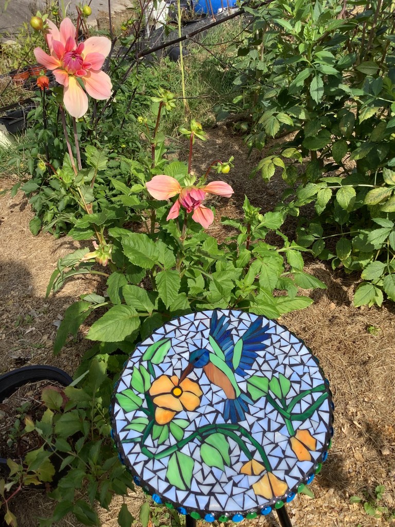 “I love my table! I’ve been “posing it” in my dahlia garden. Love that it is so portable. It has sentimental value for me as its a gift from my 93 year old gardener dad, who has a hummingbird feeder outside his window and we love watching hummingbirds together. Thank you again! I’ve been showing the photos to family and friends with rave reviews!”