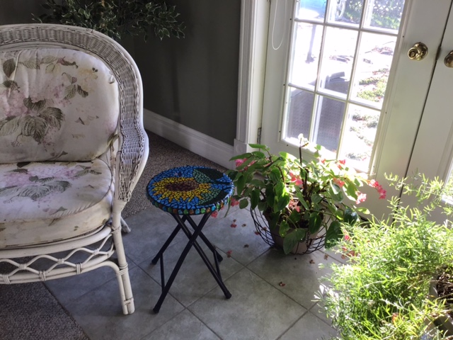 ” My mosaic table reminds me of warm lazy days on my patio, cool drinks and a good book. I love the design and the colours; they remind me of dear friends and good times.”
